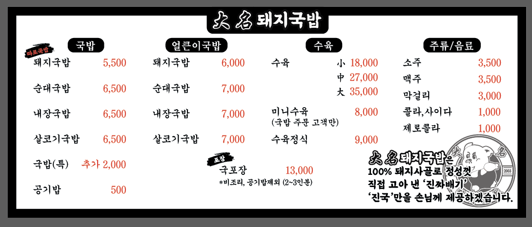 3. 대명돼지국밥 메뉴와 가격