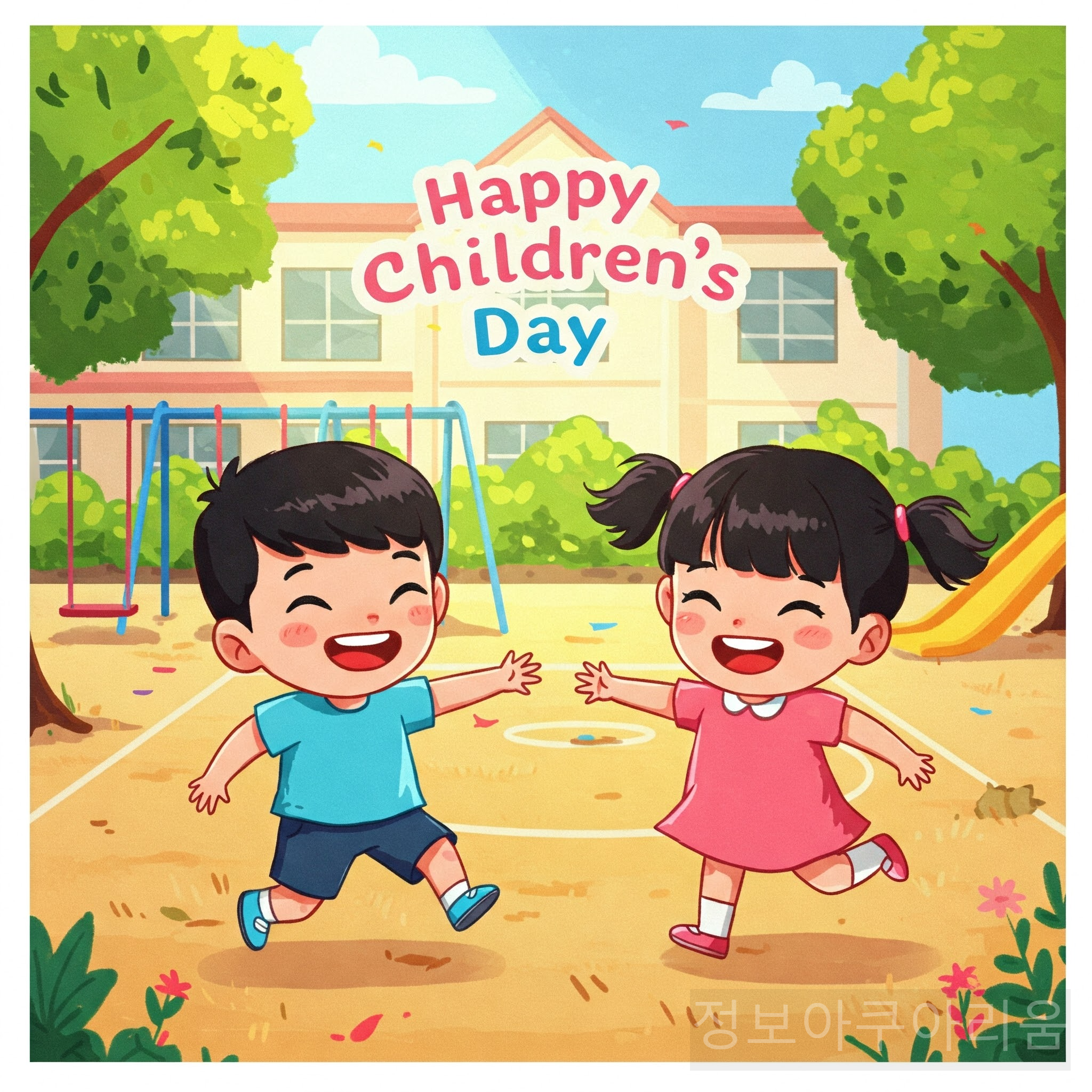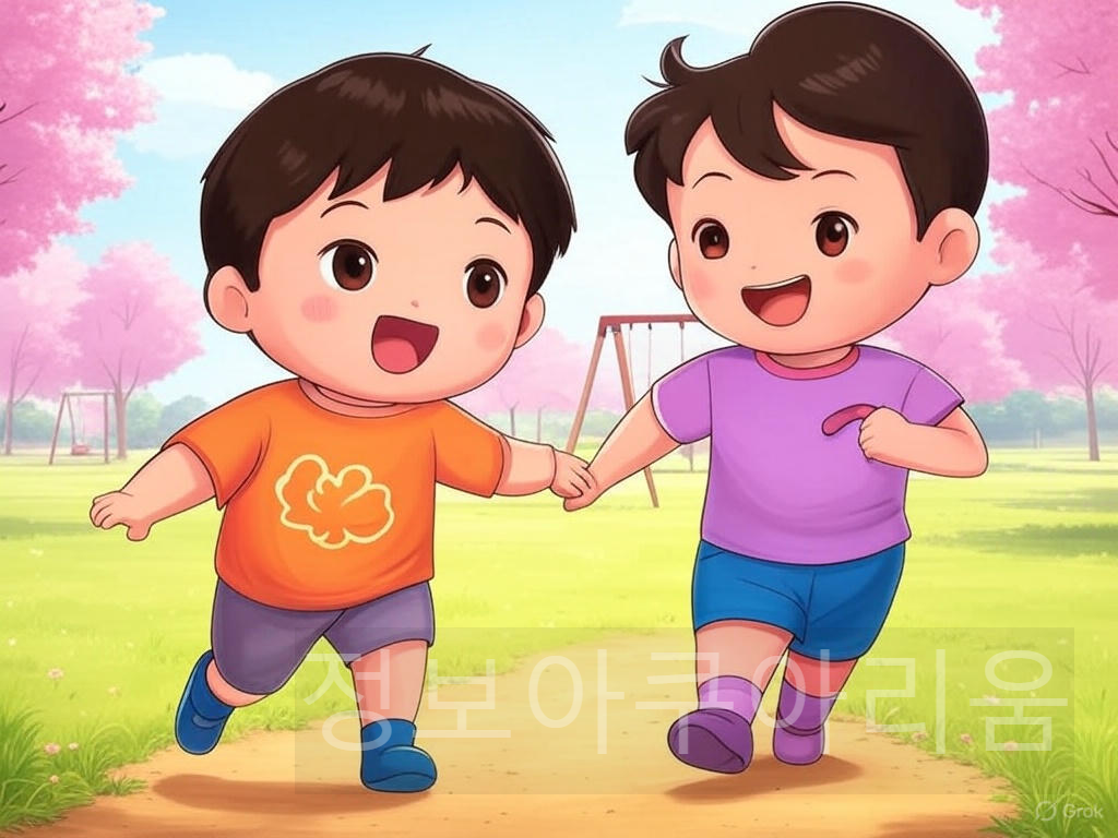 어린이날 축하 이미지를 스마트폰이나 컴퓨터, 핸드폰 배경화면으로 설정해 매일 아이들의 행복한 에너지를 느낄 수 있습니다. 벚꽃이 피어난 공원에서 손을 잡고 뛰는 이미지는 봄의 따뜻함을 더해줍니다.