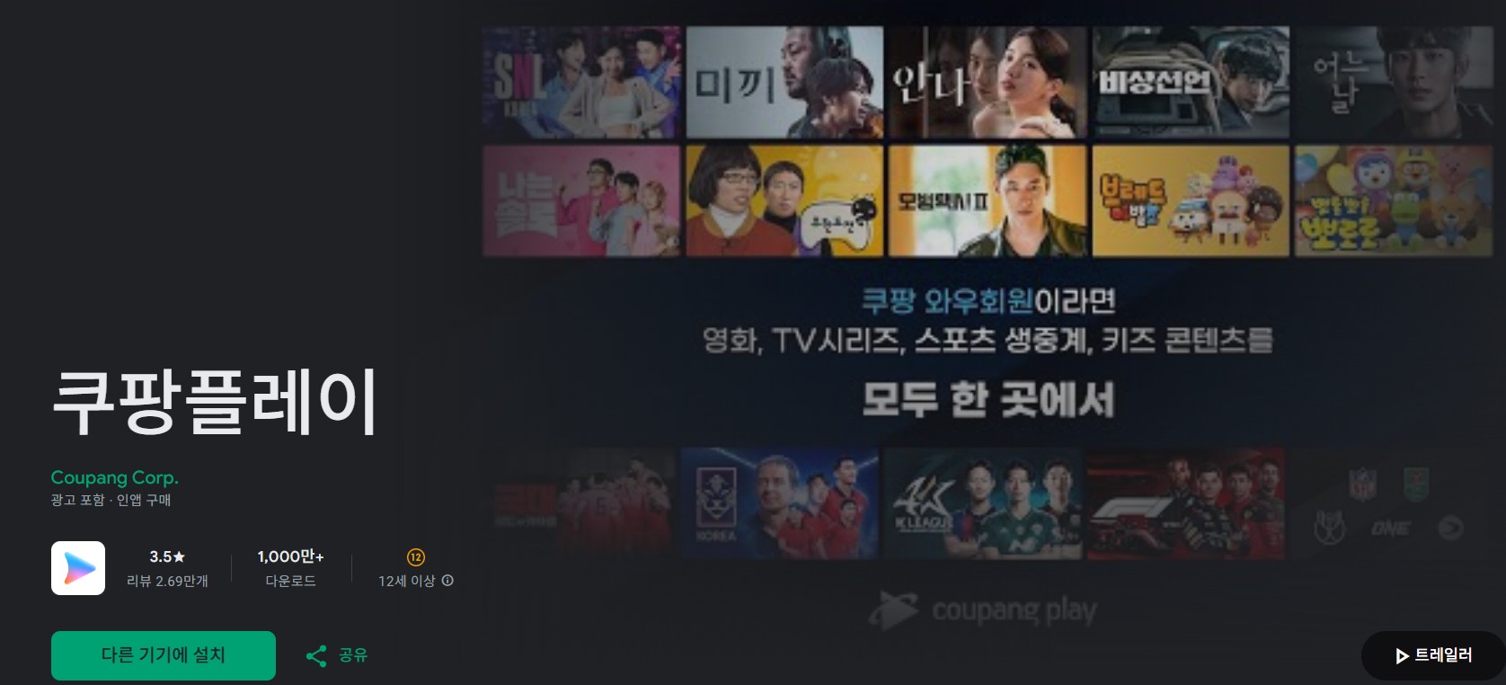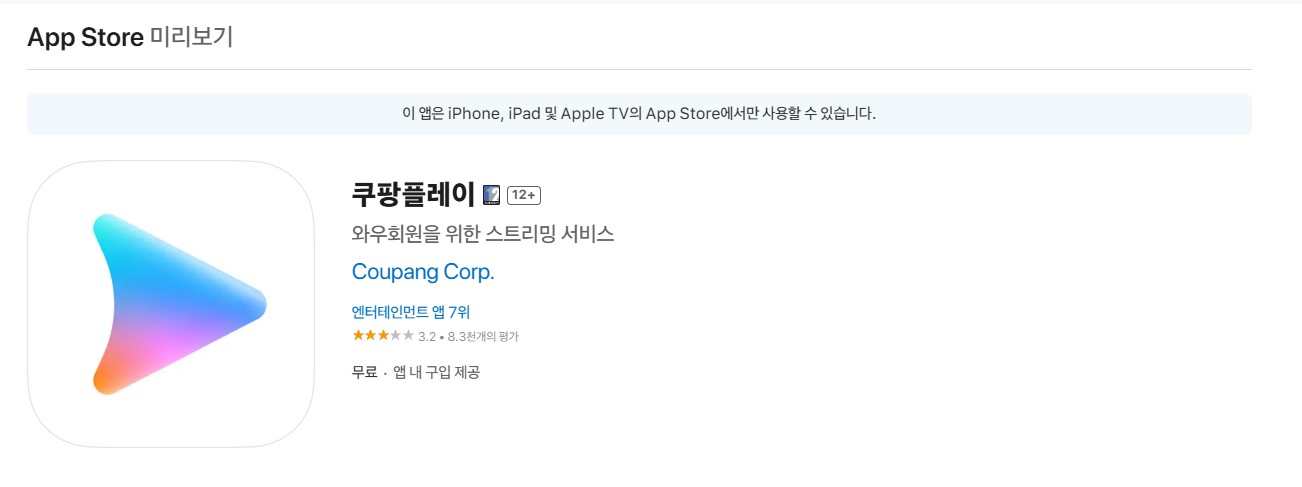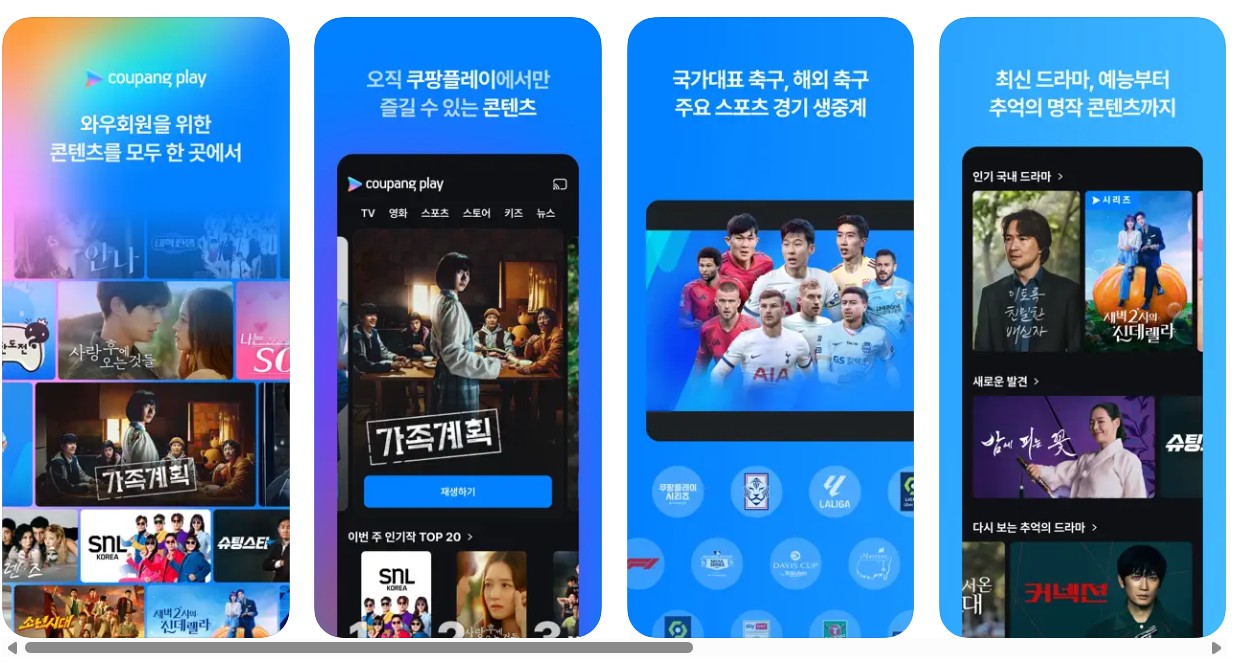 (3) 쿠팡플레이 앱 설치: Google Play 또는 App Store에서 "Coupang Play"를 검색해 앱을 다운로드 해보세요. 한국 지역 설정이 필요할 수 있어요. 그러면 앱 스토어의 국가 설정을 한국으로 맞추거나 한국 전화번호로 인증합니다. 웹사이트에서도 접속 가능하지만, 앱이 더 편리할 것 같아요.