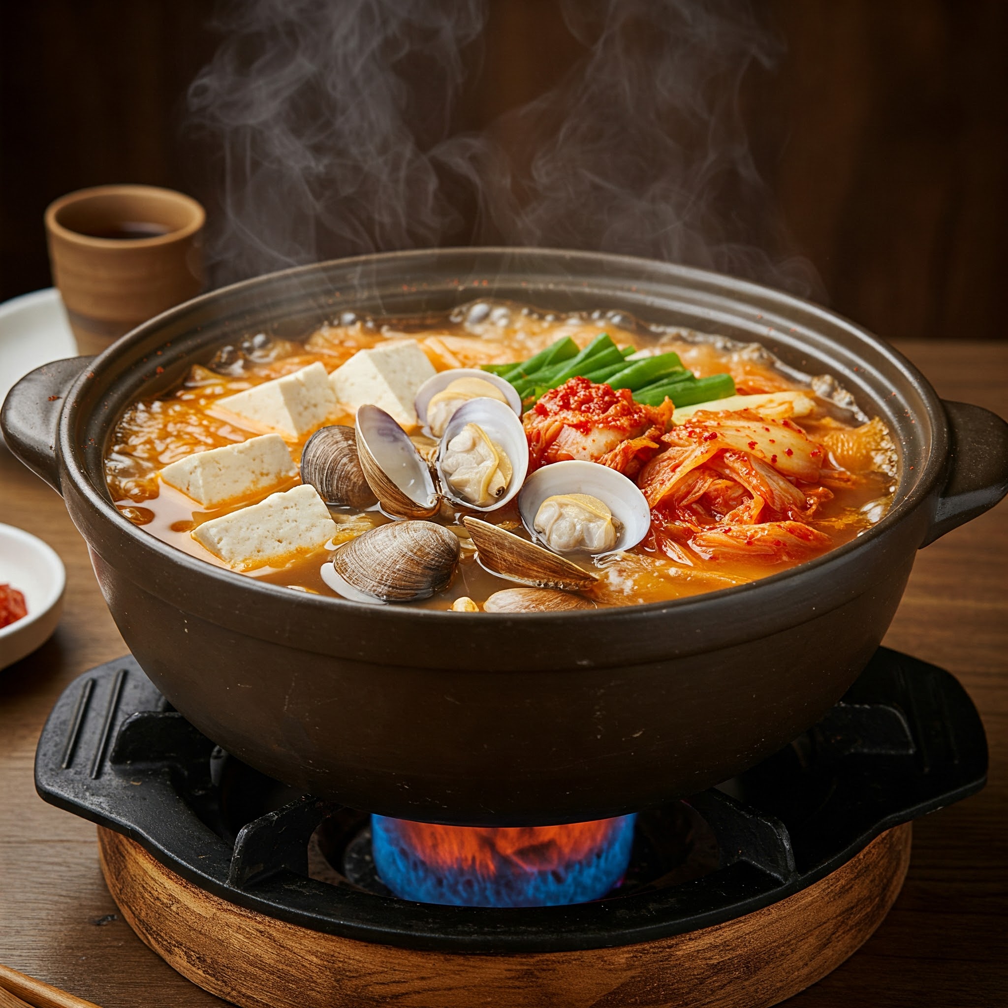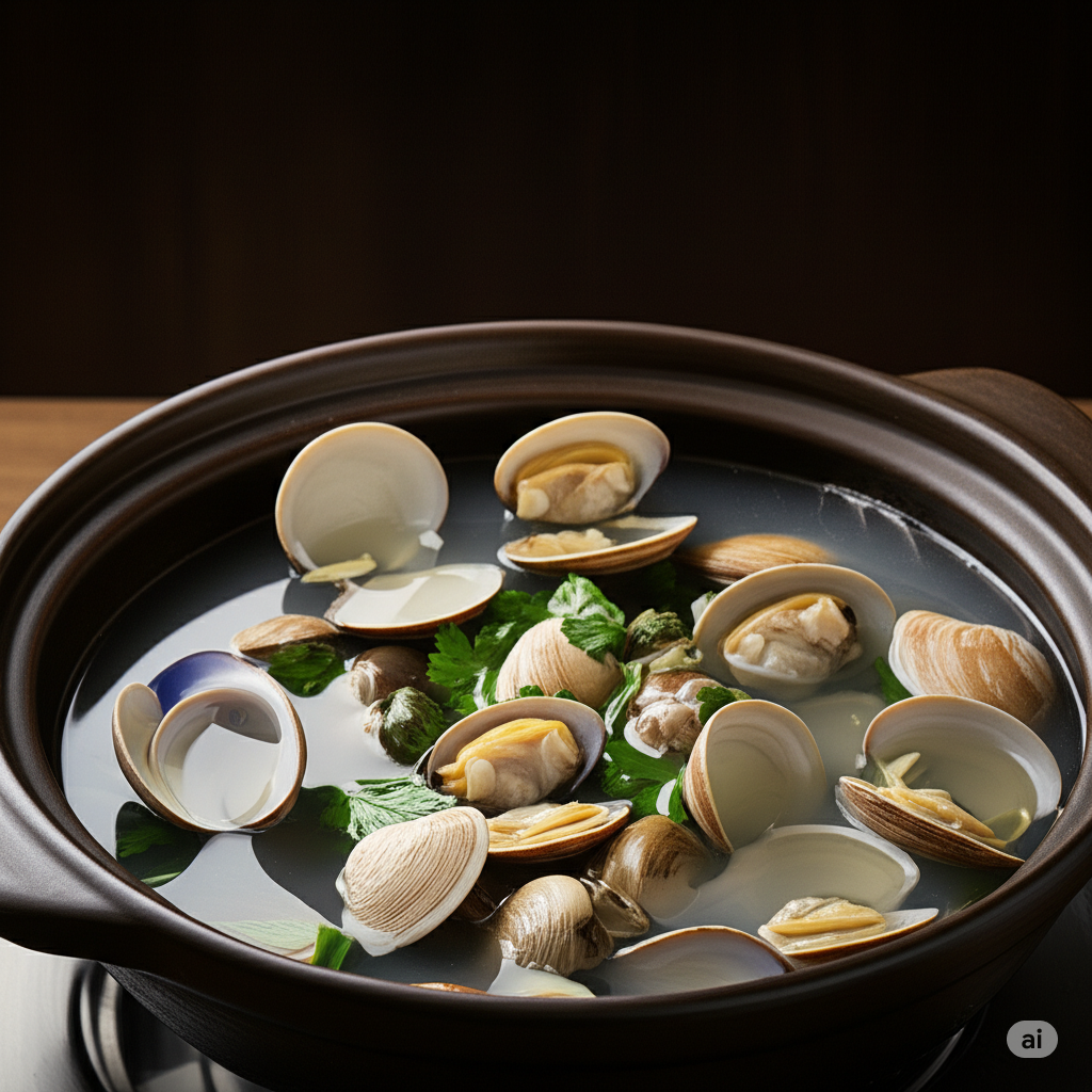 2) 물총조개탕 (20,000원): 고창에서 엄선한 동죽으로 만든 시원한 탕입니다. 조개의 깊은 맛이 국물에 녹아들어, 칼국수와는 또 다른 매력을 선사합니다.