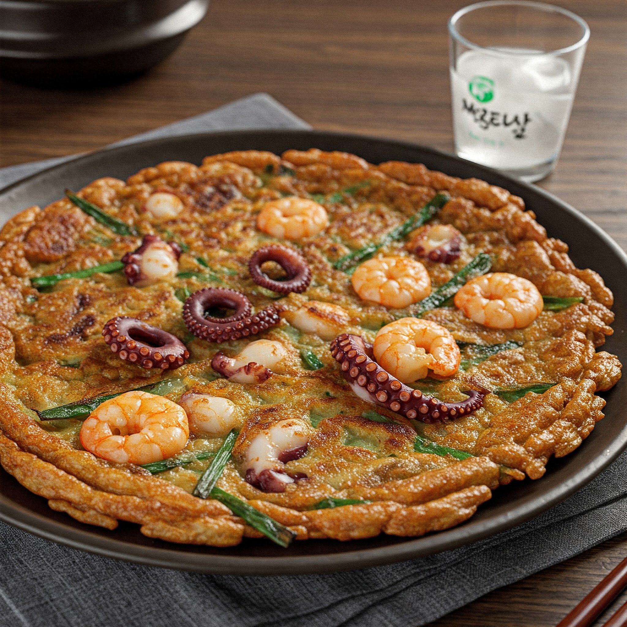 1) 해물파전 (16,000원): 낙지와 새우가 듬뿍 들어간 바삭하고 고소한 파전입니다. 막걸리와 함께 곁들여 먹으면 그 맛이 배가 되죠. 두툼한 두께와 풍성한 해산물이 돋보이는 메뉴로, 칼국수와 함께 주문하면 완벽한 한 끼가 완성됩니다.