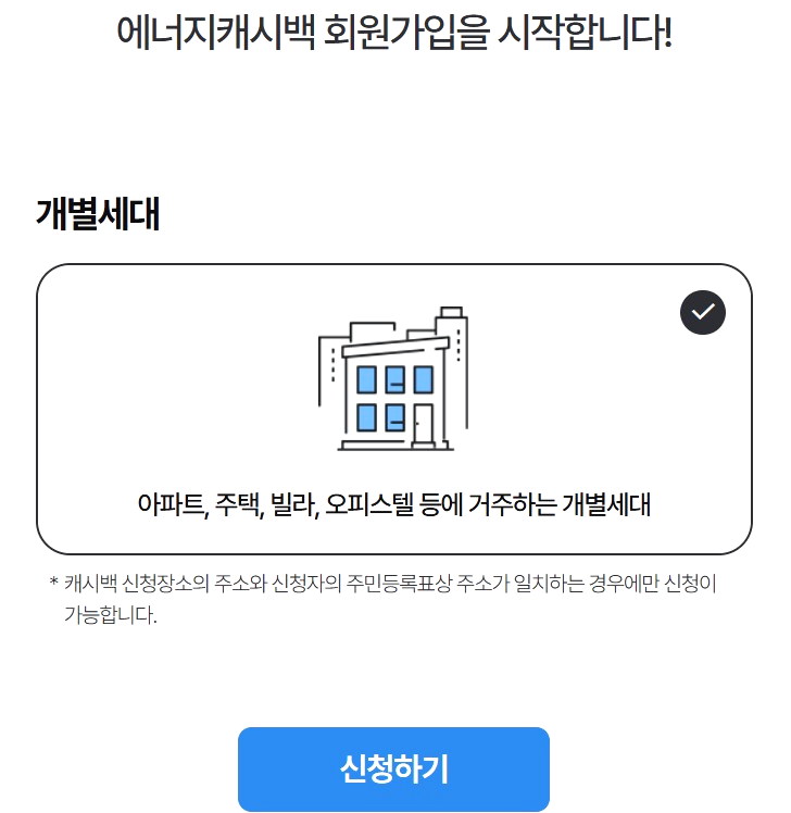 - 주민등록 주소지 기준으로 신청해야 합니다. 지방 숙소로 전입신고를 하면 해당 주소로 한전 에너지 캐시백 신청이 가능합니다.